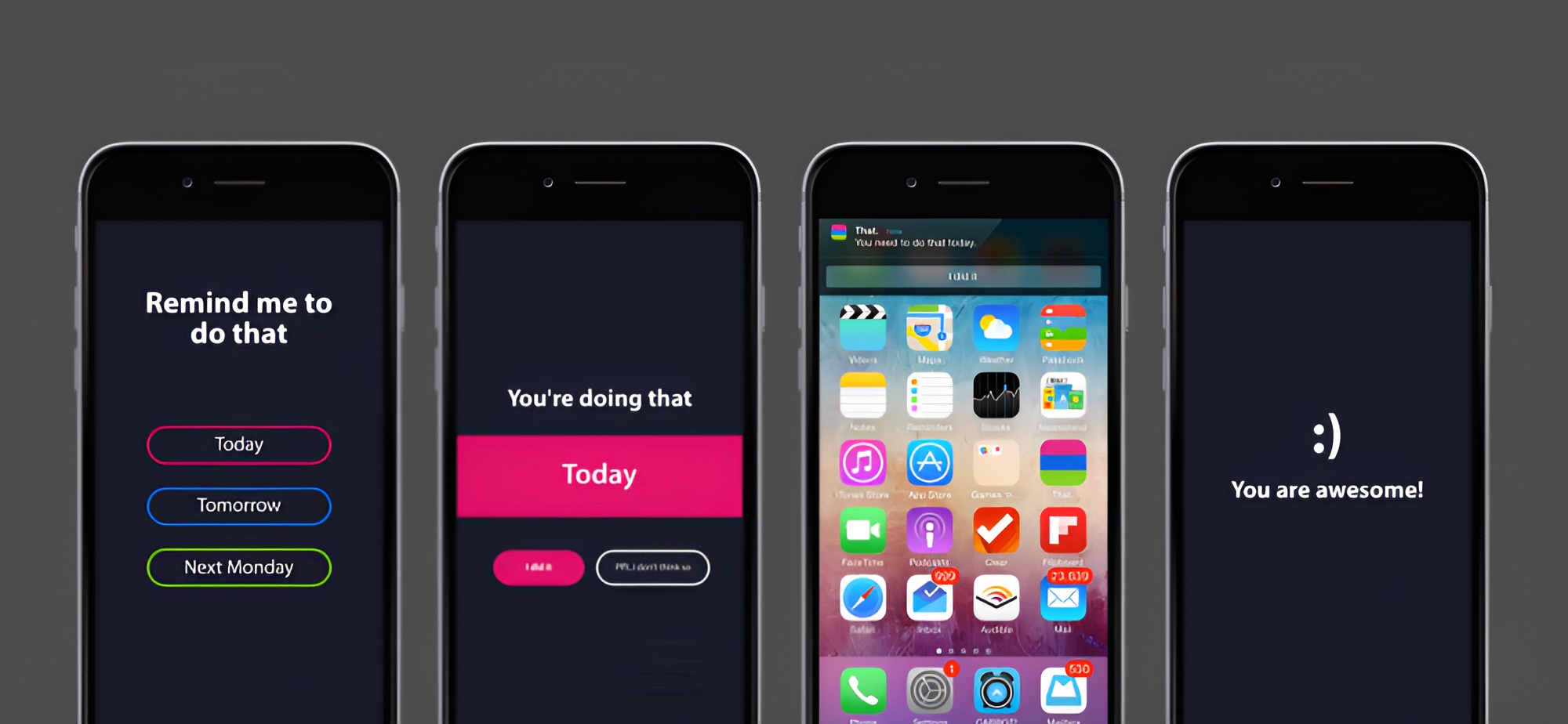 I ended up with a minimal interface that gives the users 3 options to choose from for setting their reminders, choose a day and you're all set, “That” will remind you via notifications about the task at hand on the day it is due.